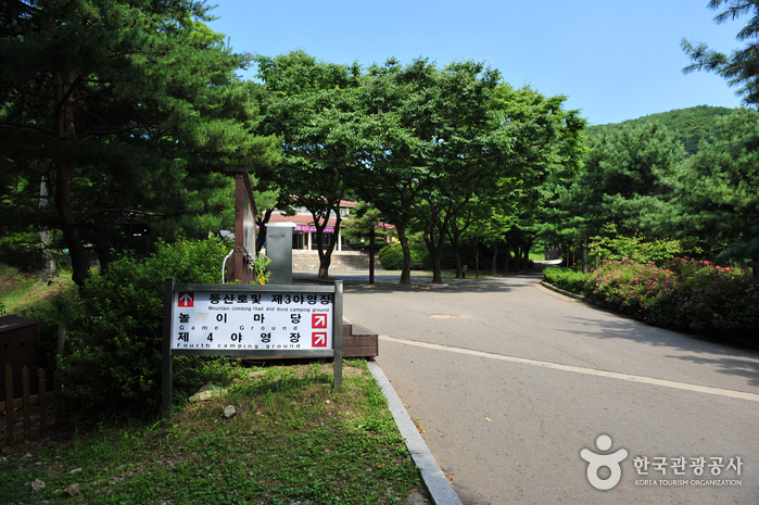 함허동천 시범야영장은 12만 7천평의 드넓은 면적에 1일 입장객 4,000명의 동시수용이 가능하며 소형(4인 기준)텐트는 1,000개까지 칠수 있다. 주요 시설물로는 관리사무소, 매표소, 전망대, 청소년수련장이 각각 1개소에 마음껏 뛰놀 수 있는 놀이마당 2개소가 있어 단체별 야유회 활동을 할 수 있으며, 편익시설로는 고정평상 69개, 이동평상 47개, 의자 123개를 설치하여 쉬며 즐길 수 있는 쉼터를 제공 이용객 편의를 도모하고 주차장 시설로는 3개소에, 승용차 200대를 주차할 수 있는 능력을 갖추고 있다. 또한 주변에는 먹거리인 도토리묵과 활어회, 삼계탕, 매운탕을 주로 하는 식당과 관광객이 쉴 수 있는 민박집 20여개가 있어 등산 후 식사는 물론 민박으로 여장을 풀 수 있다.