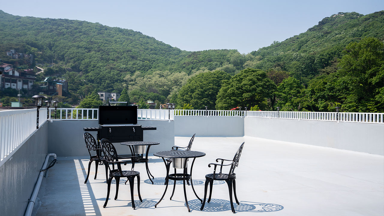 3층 단독객실은 개별바베큐 가능하며, 1층에 공동바베큐장이 있습니다.